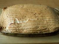 Tasty bread pudding made from whole wheat bread, full of healthy apples and with a large layer of baked egg white snow.