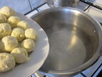 Form dumplings from the curd cheese dough and cook them in the boiling water.