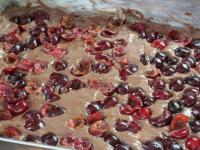 Press halved and stoned sour cherries into the dough. Bake 30 minutes at 355°F (180°C) C.
