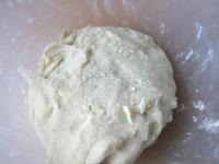 Perfectly work the dough. Knead until even the smallest lumps from the crumbled fat disappear.