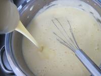 Break the eggs and separate egg yolks from whites. Place egg whites in the fridge and use them later to prepare meringues, egg white sticks or other delicacies. Stir egg yolks with milk well...