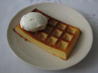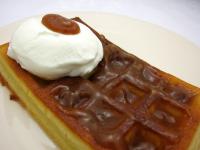 Waffles with sweet caramel sauce and sweet and sour cream curd