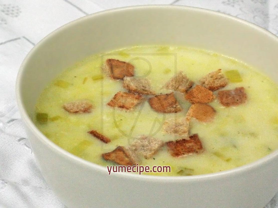 At the end mix in one glass of milk and bring it to the boil. We can serve it with dry fried bread cut into small pieces.