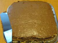 When topping is partially firm, premark with knife into slices. Then let the cake until is firm for several hours (3-4) and then finish the slices.