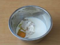 Put flour into a bowl, add crushed yeast and pour lukewarm milk. Add eggs, salt and sugar.