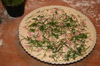 Pour the prepared sheep cheese mixture on the dough.