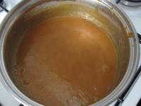 Pour in the rum and after the caramel dissolves again, pour in the whipping cream.